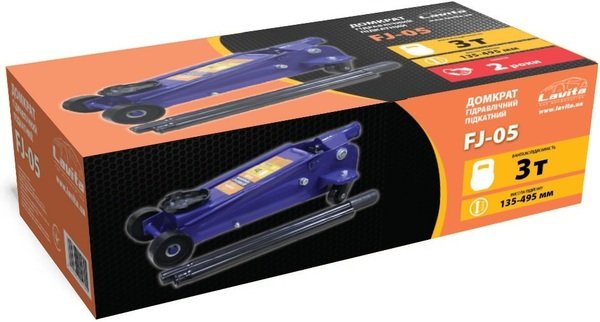 Описание Домкрат Lavita гидравлический подкатной 3т, 130-490мм, Синий (LA_FJ-05)