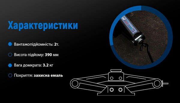 Характеристики Домкрат Vitol ромбовый 2т с резиновой подушкой 390мм (DB-1132TH)