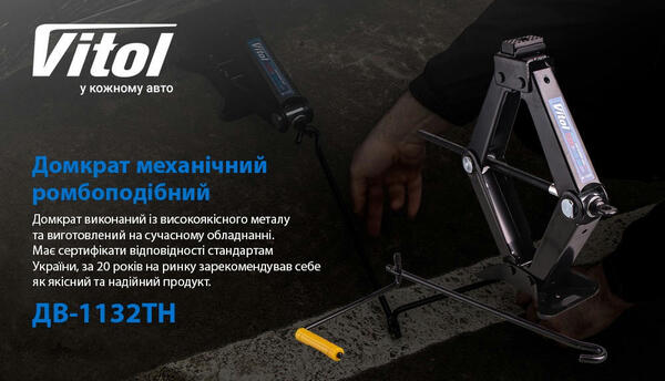 Описание Домкрат Vitol ромбовый 2т с резиновой подушкой 390мм (DB-1132TH)