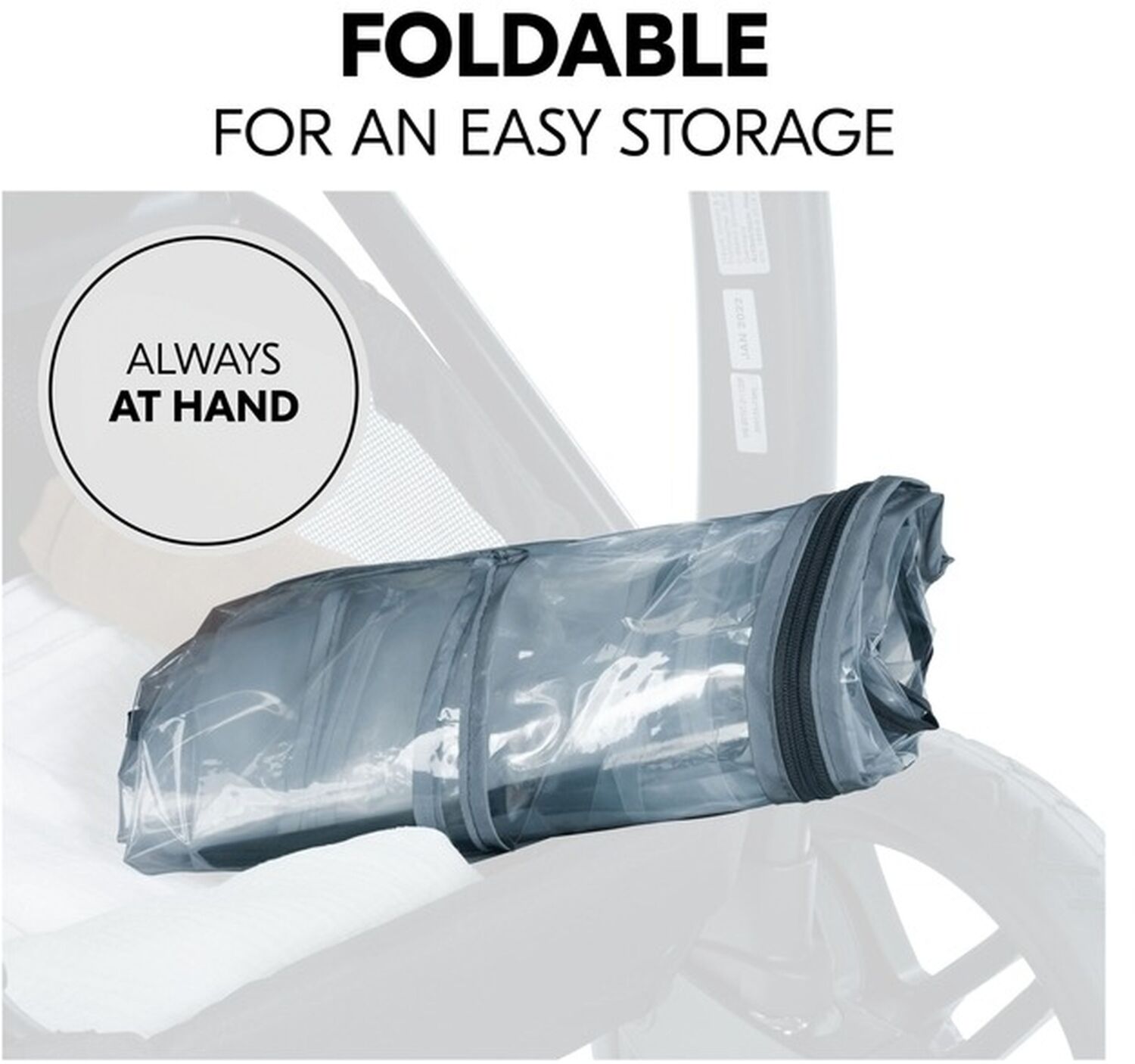 Благодаря небольшому размеру дождевик можно легко хранить в корзине для покупок или в органайзере. Дождевик совместим с большинством 4-колесных колясок, таких как Hauck Rapid 4D, Move so Simply, Walk N Care, Uptown или Travel N Care.
