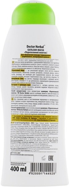 Шампунь Dr Herbal «Перепелиный желток» 400мл
