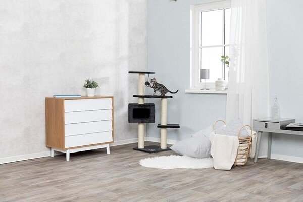 Коты по натуре - игривые животные с инстинктами охотника, а потому, им важно иметь возможность ежедневно держать свои когти острыми и использовать их по назначению. Такие игры могут повлечь за собой ущерб мебели или вещей в доме, а потому продукция немецкого производителя Trixie - Дряпка Trixie с домиком «Palamos» 109 см, станет идеальным приобретением. Ваш питомец сможет веселиться и развиваться, не причиняя ущерб вещам в доме.