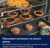 Функция многоуровневой готовки активирует третий нагревательный элемент, позволяя выпекать блюда на нескольких уровнях. Идеально подходит для использования сразу трех противней с печеньем или пирожками.
