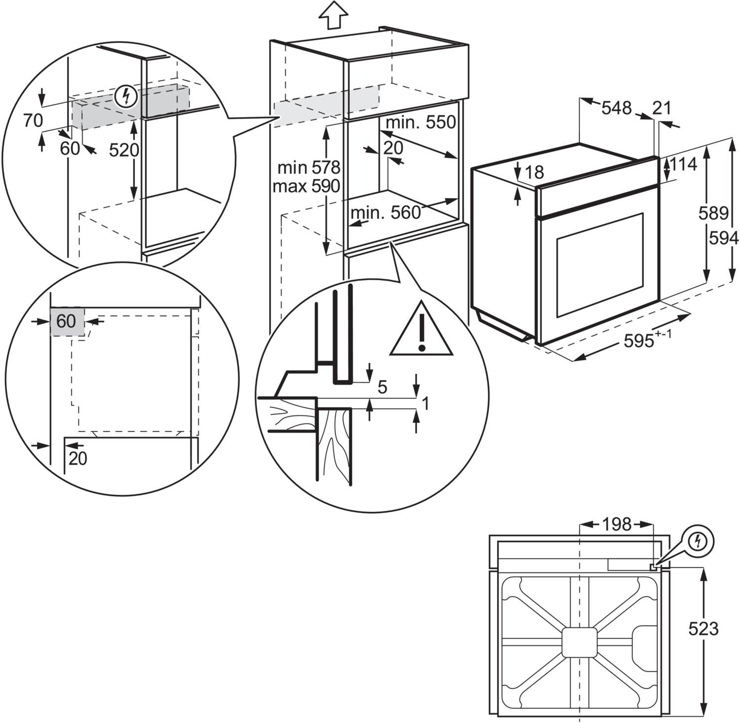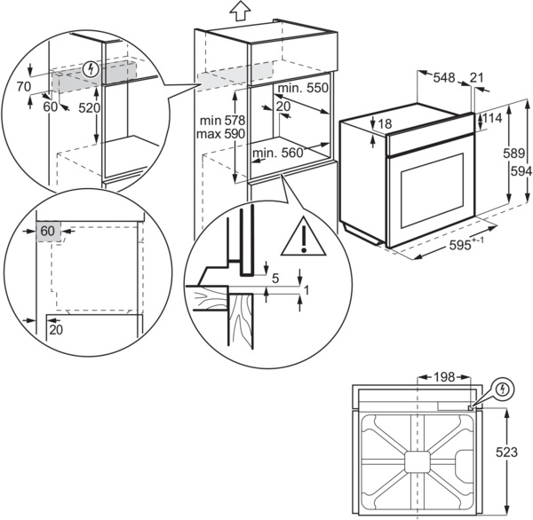 | Высота для встраивания, мм | 578-590 |