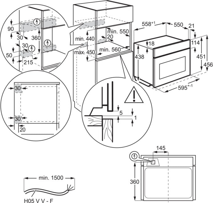 | Высота для встраивания, мм | 450 |