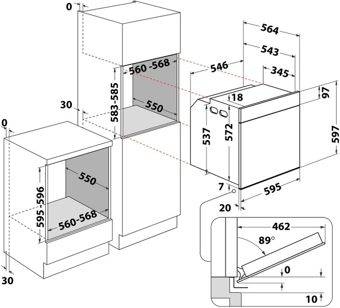 | Ширина для встраивания, мм | 560-568 |