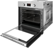 Благодаря специальной паровой системе очистка духовки больше не будет в тягость. Пар размягчает загрязненные поверхности, а процесс очистки сводится к тому, чтобы налить 1 стакан воды на поддон, включить духовку на 50°C и оставить ее на 30 минут. Грязь, размягченная паром, легко удаляется с помощью губки с водой и моющим средством.