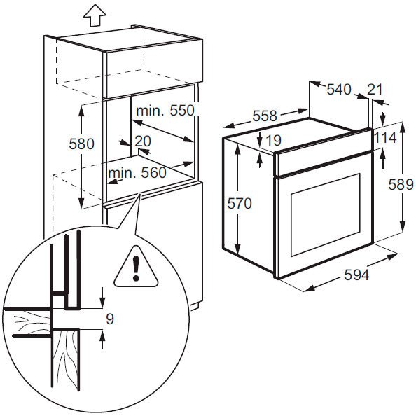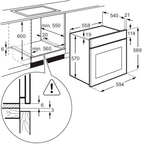 | Высота для встраивания, мм | 600 |