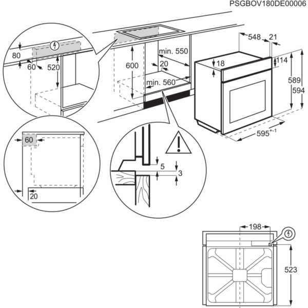 | Высота для встраивания, мм | 600 |