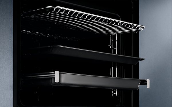 Очень удобный в комплектации шкаф, позволяет готовить разные блюда весьма качественно. Прогрев всего шкафа равномерный, нет из-за этого сырой серединки при готовке мяса. Нравится как работает функция с грилем, позволяет в кратчайшее время придать блюду золотистую корочку. Направляющие у духовки Electrolux плавные и крепкие, от веса не деформируются.