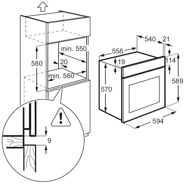 | Высота для встраивания, мм | 593 |