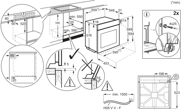 | Высота для встраивания, мм | 590 |
