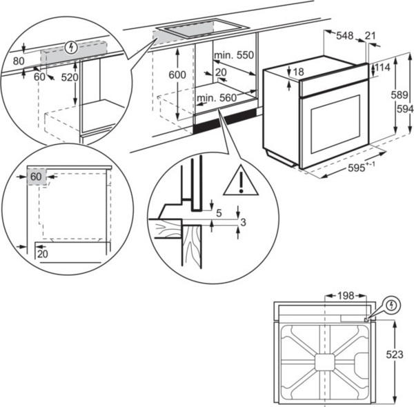 | Высота для встраивания, мм | 600 |