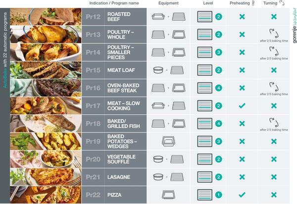 Духовки Gorenje OptiBake предлагают полностью автоматические программы приготовления с 22 самыми популярными рецептами на выбор, которые идеально подходят для начинающих. Программы AutoBake, тщательно протестированные экспертами Gorenje, являются безотказными и обеспечивают превосходные результаты даже без предварительного разогрева. Все, что нужно сделать пользователю в некоторых случаях, это выбрать тип и вес блюда и нажать кнопку "Старт". Духовой шкаф сделает все остальное.