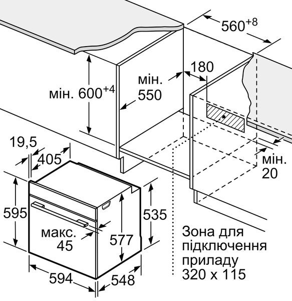 | Высота для встраивания, мм | 585-595 |
