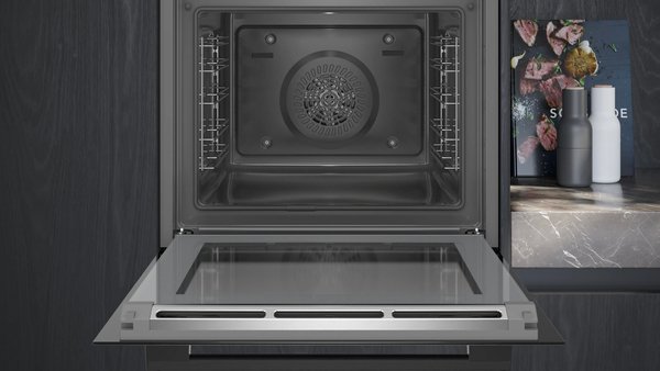Перчатки для чистки духового шкафа больше не понадобятся: благодаря функции activeClean духовой шкаф очищается сам. Просто уберите остатки пищи, а остальное сделает прибор. Нажмите кнопку - и весь осадок после пирогов, запеченного мяса или рыбы на гриле, от которого обычно так трудно избавиться, превратится в пепел при большой температуре. Вам останется просто обтереть поверхность влажной тряпкой.