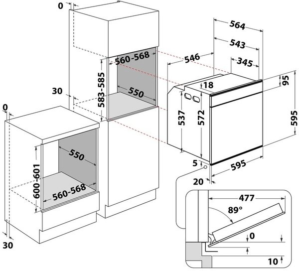 | Высота для встраивания, мм | 583 |
