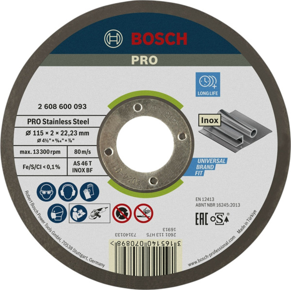 - Диск отрезной Bosch Professional для нержавеющей стали 115x2x22.23мм (2.608.600.093)