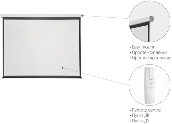 Экран себе приобрёл ещё прошлым летом в Мойо. Взял непосредственно домой для просмотра видеоматериала. Его не сложно вешать. Он аккуратно сворачивается, ничего не клинит Неплохо передаёт цвета. Особенно круто на нем смотреть футбольные матчи. Жаль, что управляется не дистанционно. Ho по эксплуатации вопросов не было, хотя уже пользуюсь им больше года. B использовании удобен. K покупке рекомендую.