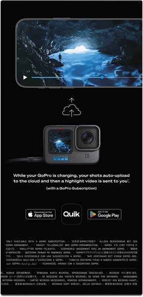 Благодаря улучшенному энергопотреблению время непрерывной записи на HERO12 Black в формате 5.3K60 вдвое дольше (70 минут), в формате 5.3K30 — более 1,5 ч, а в формате 1080p30 — более 2,5 ч.