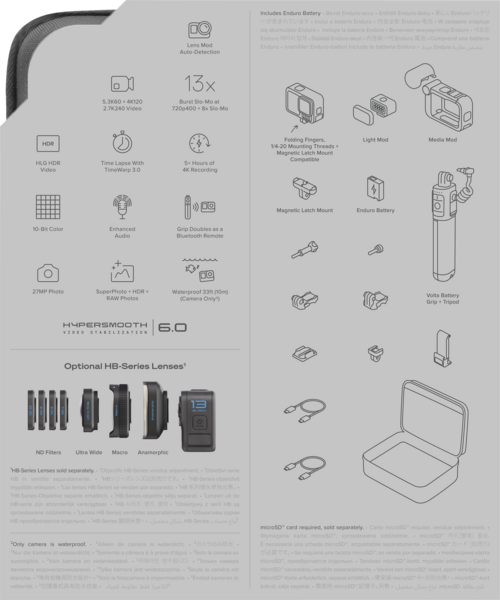 - Медиамодуль Media Mod расширяет возможности камеры. Для просмотра или передачи данных, а также подключения к внешним мониторам воспользуйтесь HDMI-выходом. А высококачественный встроенный микрофон обеспечит четкое и чистое звучание даже в среде шумного окружения или сильных порывов ветра.