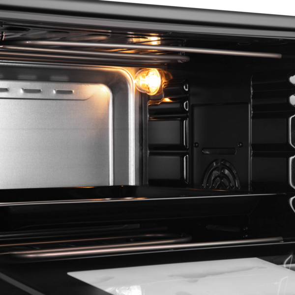 Внешне сдержанный корпус скрывает воплощение заботы производителя о безопасности и комфорте пользователя. Печь отличается улучшенной термоизоляцией внутренней камеры и ее увеличенным объемом. Но и это не все: для изготовления дверцы применено закаленное стекло, внутри электрическая печь имеет подсветку, а устойчивость установки гарантируют нескользящие ножки.