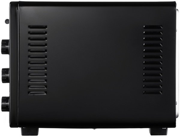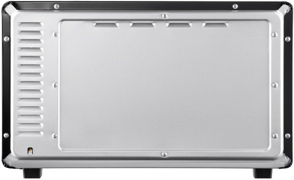 Электрическая мини-печь изготовлена в сдержанном черном цвете и минималистском дизайне. Модель отличается улучшенной термоизоляцией и стойкостью, ведь конструкцией предусмотрены четыре нескользящих ножка. Удобство использования обеспечивает широкий температурный диапазон (от 50 до 300 °C), индикация окончания процесса приготовления и встроенный таймер (до 90 минут).