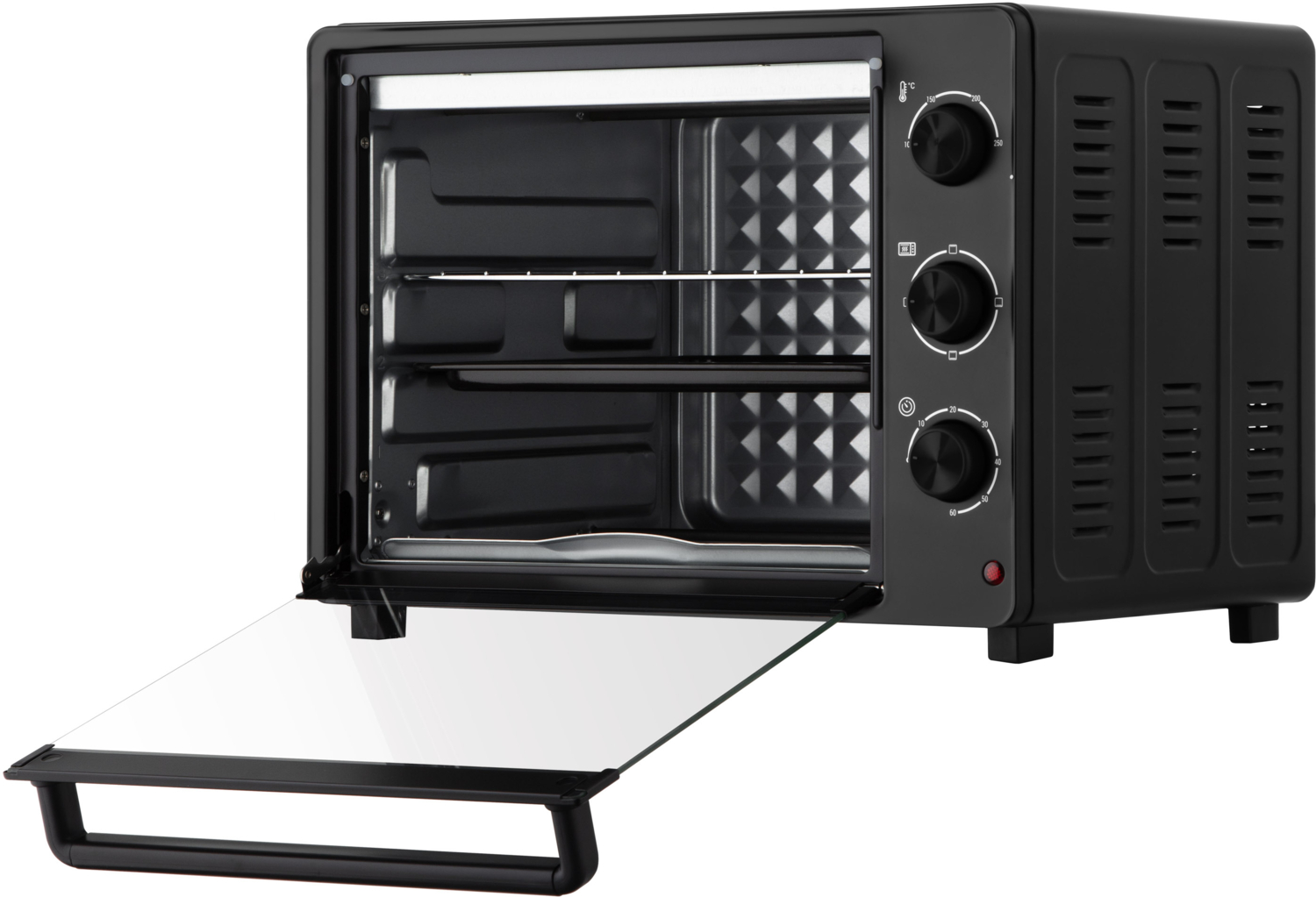 Благодаря мощности 1525 Вт печь быстро нагревается, а температурный диапазон от 100 до 250°C позволяет выбрать оптимальные настройки для любого блюда. Таймер 60 мин и индикация завершения приготовления избавляет от необходимости постоянно контролировать процесс – блюда будут пропечены, но не пересушены.