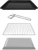 | Комплектация | Документация, Печь, Поддон для крошек, Противень, Решетка для гриля, Ручка для безопасного извлечения противня/решетки |