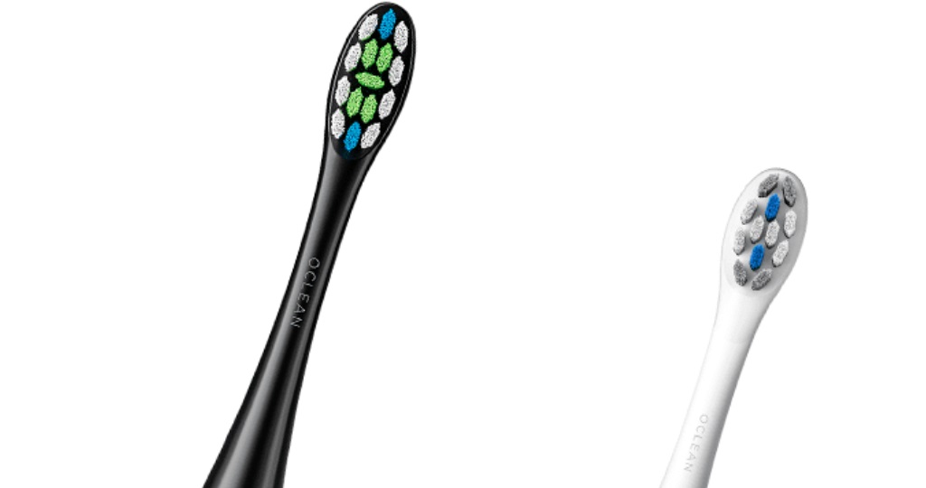 В комплекте Oclean X Pro Digital вы найдете две разные насадки. Стандартная для удаления налета больше по размеру, а щетинки расположены в форме буквы W. Задняя часть имеет ребристую поверхность для очистки поверхности языка. Насадка для деликатной чистки Delicate Clean меньше по размеру, а щетинки имеют более мягкую структуру, что позволяет им более деликатно и осторожно очищать эмаль, не вызывая кровотечений.