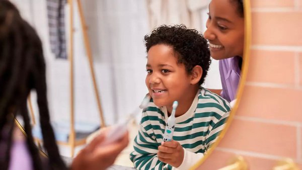 Дети учатся чистить зубы, а наша звуковая технология выполняет остальную работу. Динамические движения электрической зубной щетки Philips Sonicare For Kids мягко и эффективно очищают межзубные промежутки и участки вдоль линии десен.