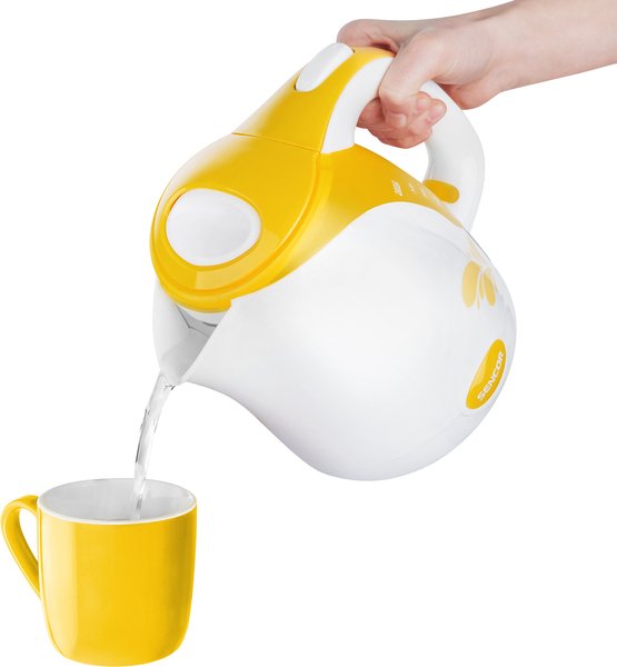 - дополнительную фильтрацию обеспечивает мелкая сетка, которая задерживает известковые включения воды. В комплексе с высококачественным пластиком это дает чистейший напиток без посторонних запахов (отзывы пользователей подтверждают, что электрочайник Sencor SWK1506YL обеспечивает естественный вкус любимых продуктов).