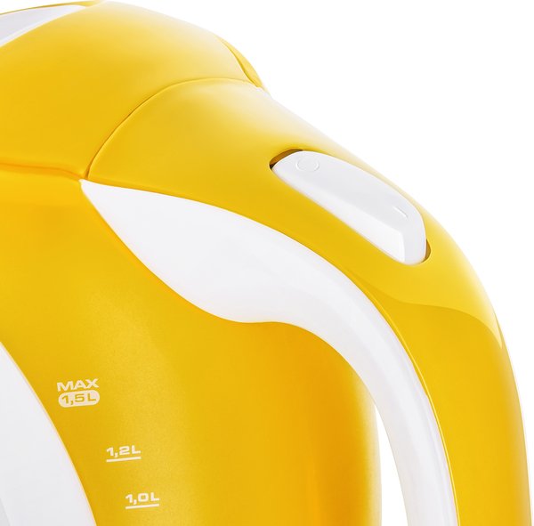 Добавит яркости на вашей кухне. Красочную расцветку с аккуратными желтыми узорами можно оценить на фото. Особенностью модели является скорость закипания – вы сможете в считанные минуты наслаждаться чаепитием в компании гостей, даже если прибор полностью заполнен на 1,5 л.