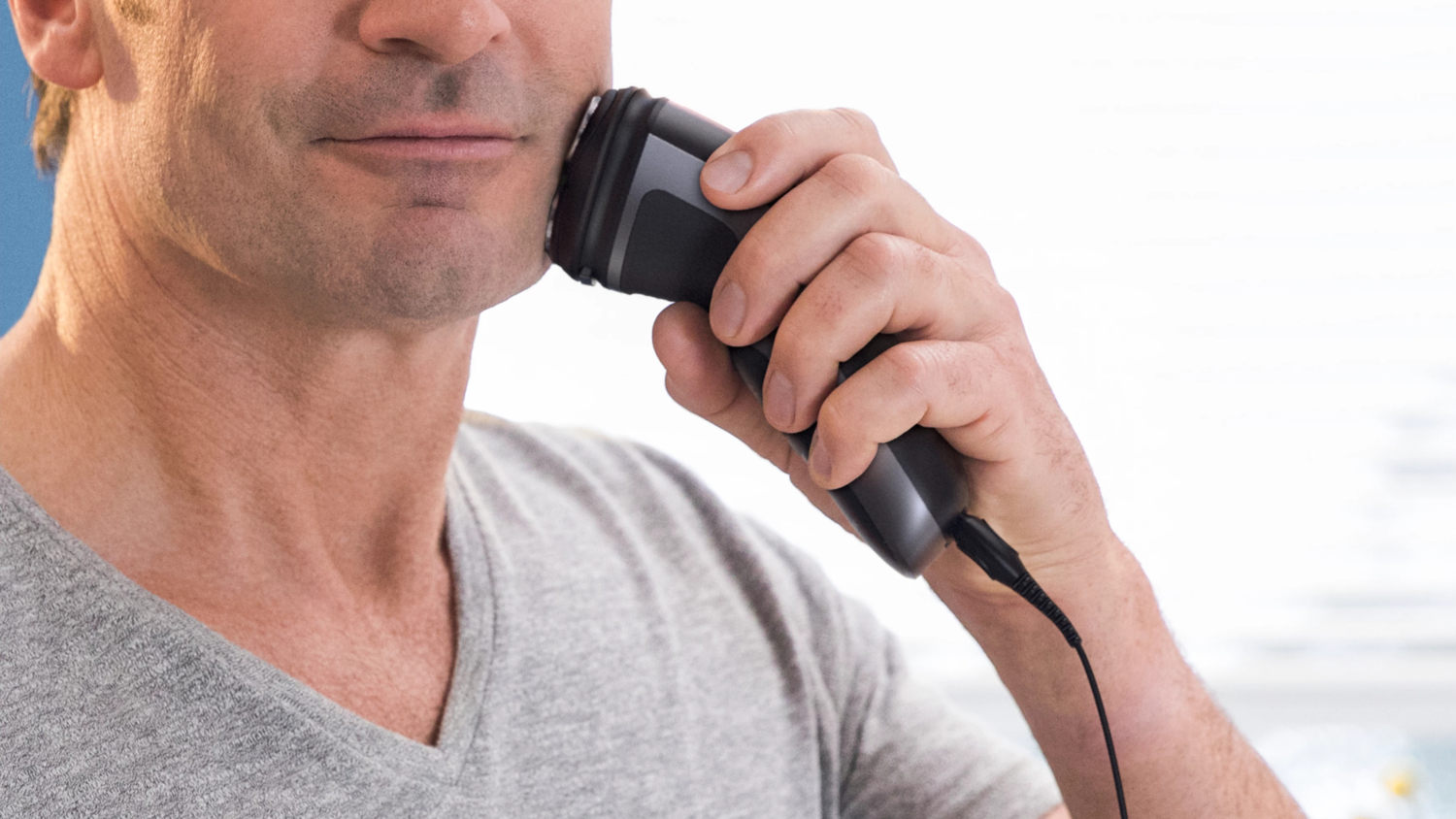 Спешите? Просто подключите бритву к электросети на 5 минут для быстрого бритья.