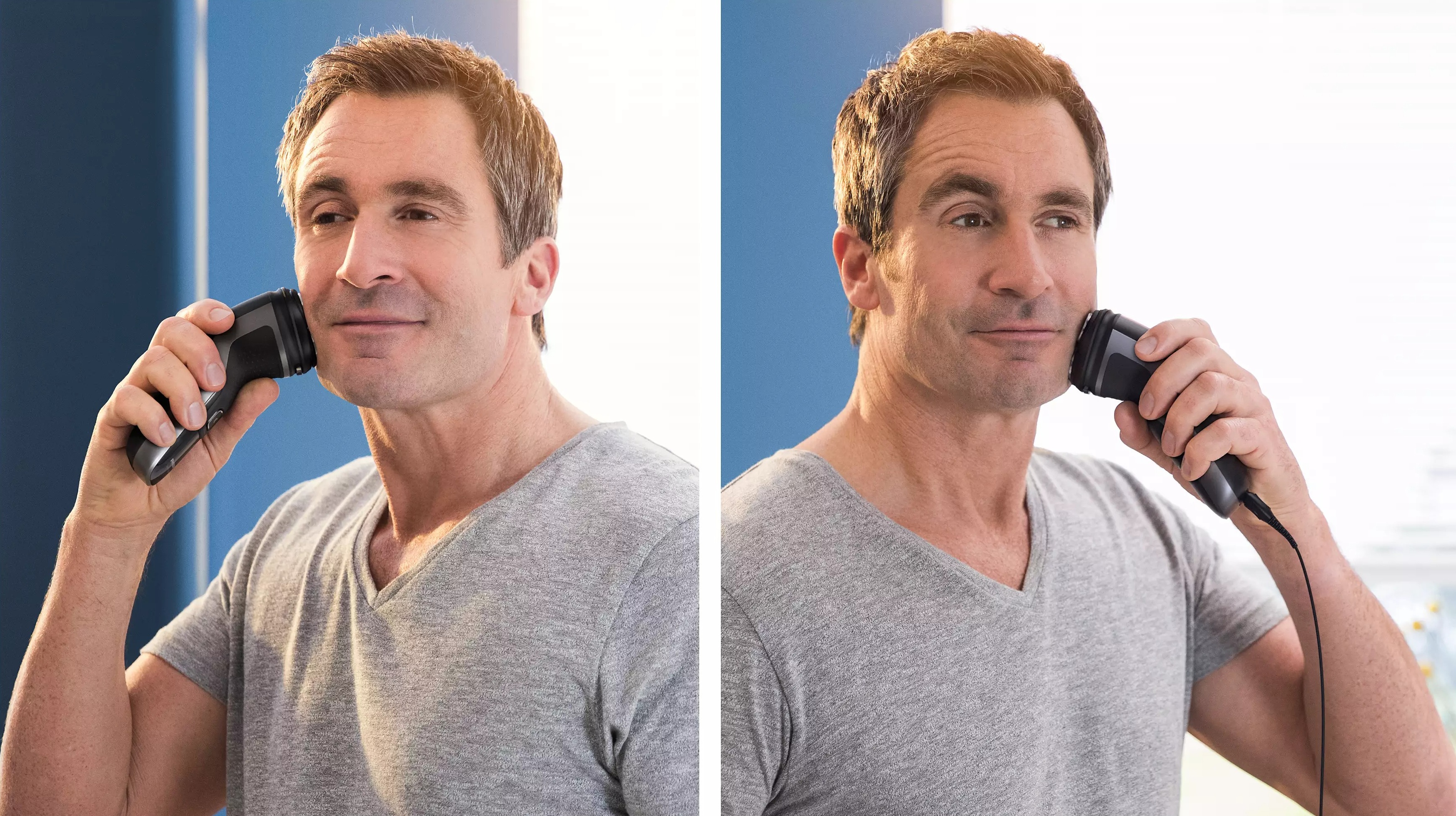 Удобная работа в беспроводном режиме для комфортного бритья. Подключите к сети, когда аккумулятор разряжен.