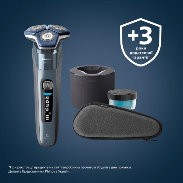 | Дополнительно | 3 бритвенные головки, Выдвижной триммер, Датчик мощности, Дорожный футляр, Станция самоочистки |