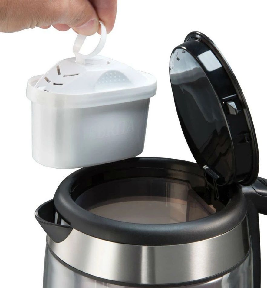 Чайник Clarity Kettle оснащен инновационной системой фильтрации, которая обеспечивает чистоту воды, что способствует лучшему вкусу напитков. Встроенная система фильтрации Brita обеспечивает удаление примесей, уменьшение накипи и хлора, а также используется для постоянного поглощения меди и свинца, которые могут содержаться в водопроводной воде. Он также имеет электронное напоминание о замене картриджа.