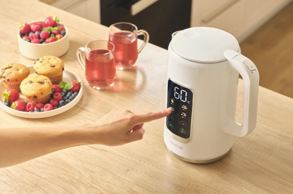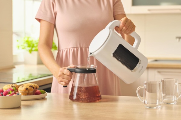 Благодаря двойному корпусу из нержавеющей стали и пластика чайник дольше сохраняет тепло и одновременно остается безопасным на ощупь — риск случайных ожогов минимизирован. Пользователь может выбрать один из пяти температурных режимов: 40°C, 70°C, 80°C, 90°C и 100°C — что идеально подходит для приготовления различных напитков, от детского питания до деликатных сортов чая.