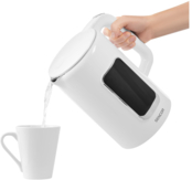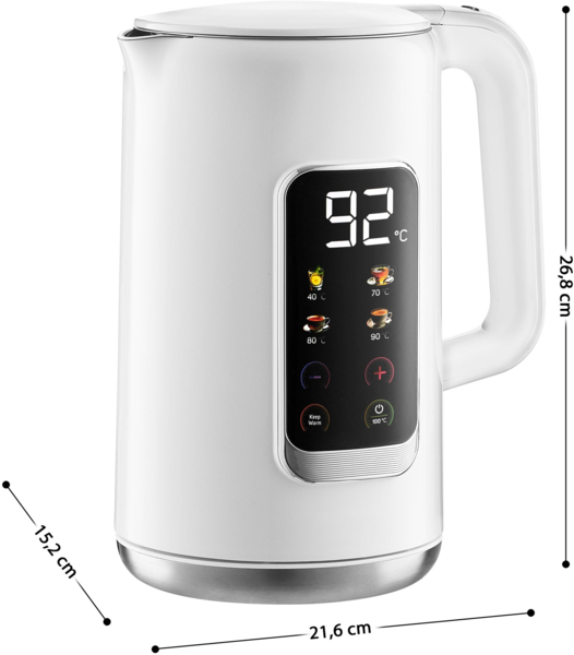 Температура и статус отображаются на стильном LED-дисплее с белой подсветкой, который придает прибору современный вид. Безопасность эксплуатации обеспечивает тройная система защиты: автоматическое отключение после закипания, защита от перегрева и блокировка включения без воды.