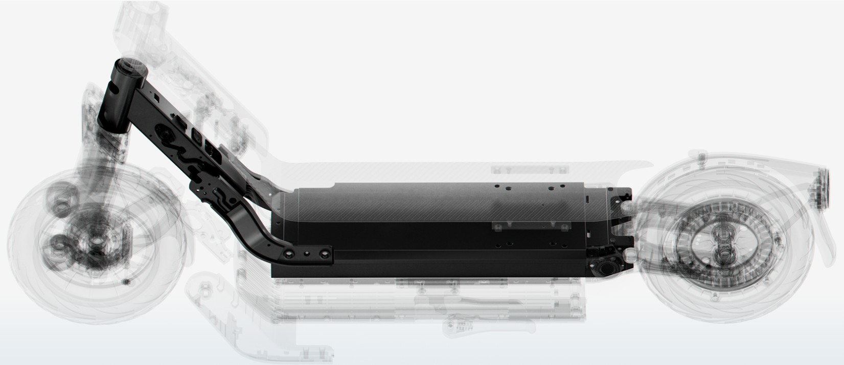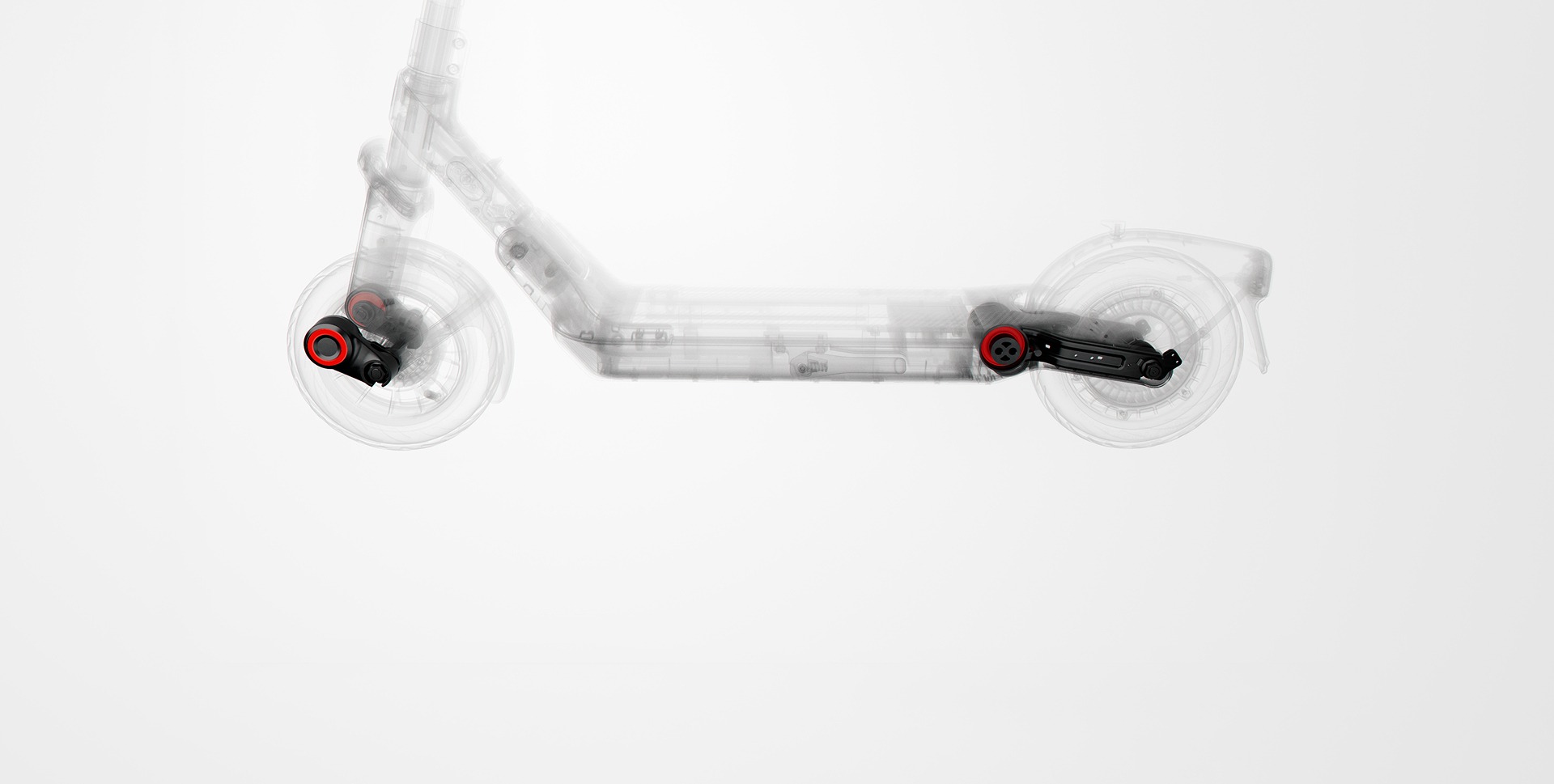 Оснащенный большим расстоянием позади оси колеса, в сочетании с точно настроенным углом наклона рулевой стойки и демпфированием руля, самокат обеспечивает повышенную устойчивость к внешним воздействиям и сохраняет стабильную езду даже в непредсказуемых условиях.