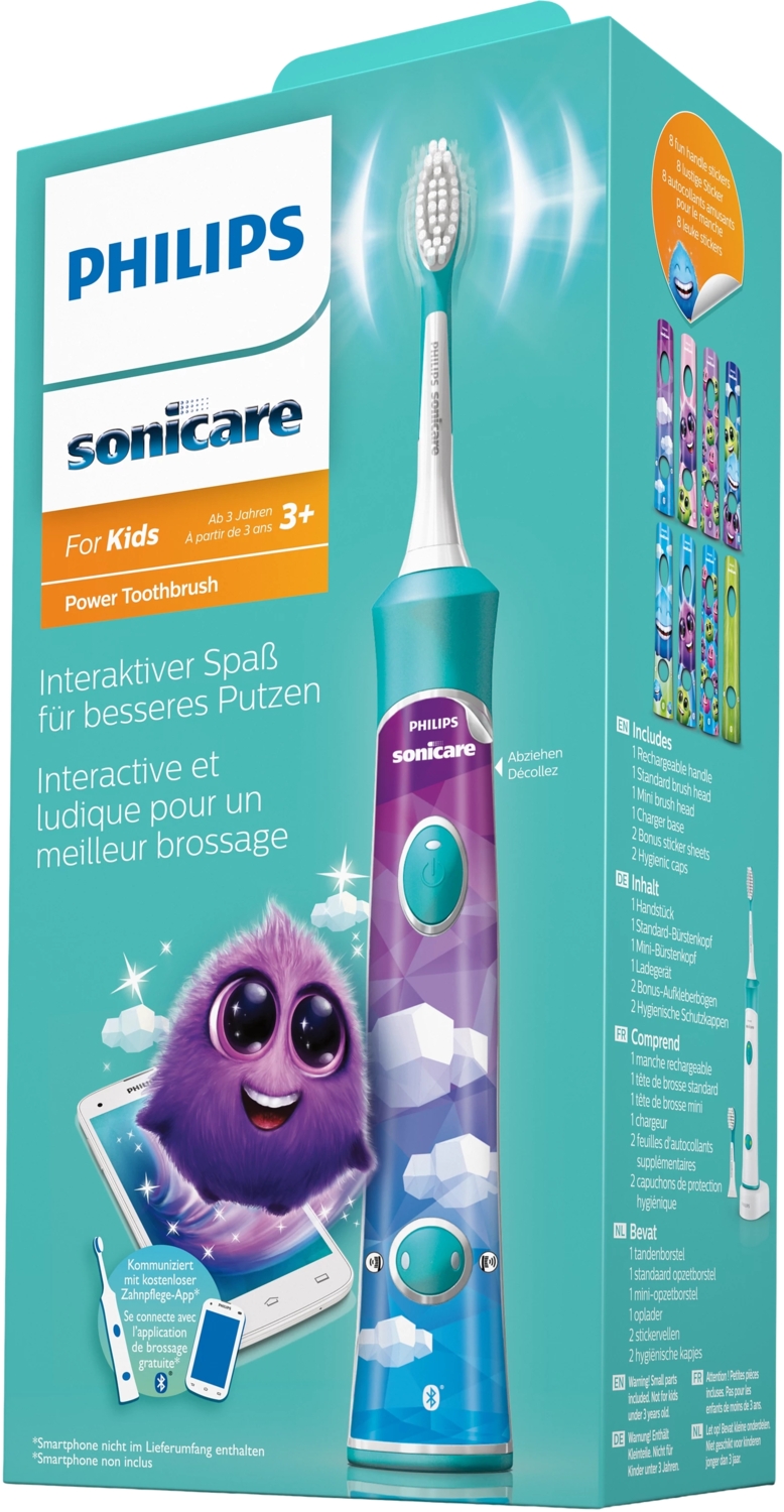 Для содействия правильной чистке электрическая зубная щетка Philips Sonicare For Kids с поддержкой Bluetooth подключается к приложению и помогает детям постепенно увеличивать продолжительность чистки. Цель – достичь рекомендованной стоматологами продолжительности чистки – 2 минуты. Во время использования приложения дети повторяют за учителем по чистке, который тщательно очищает каждый участок своего рта.