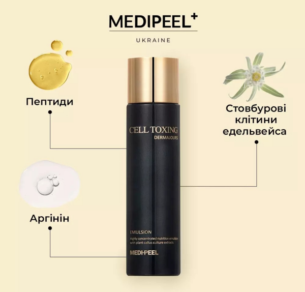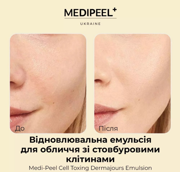 Омолаживающая эмульсия на основе стволовых клеток под названием "Medi-Peel Cell Toxing Dermajours Emulsion" представляет собой продукт с интенсивным восстанавливающим и анти возрастным действием. Этот препарат предлагает комплексное решение для ухода за кожей, способствуя выравниванию ее текстуры, профилактике морщин, укреплению структуры эпидермиса и уменьшению пигментации.