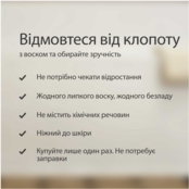 Захватывает те волоски, которые оставляет воск, без использования химических веществ.