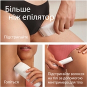 В комплекте — мини-триммер для тела, женская бритва и насадка-гребень для чувствительных зон.