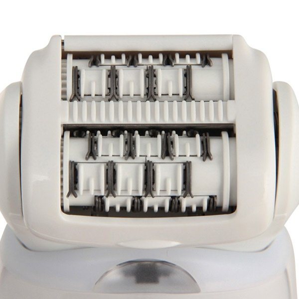 Головка эпилятора выполнена в виде двух отдельных дисков, которые позволяют выдергивать волоски любой толщины и длины. Первый диск убирает основную часть волосяных щетинок, второй все пропущенные первым. Это обеспечивает эффективность каждого движения для безупречной и скорой эпиляции.