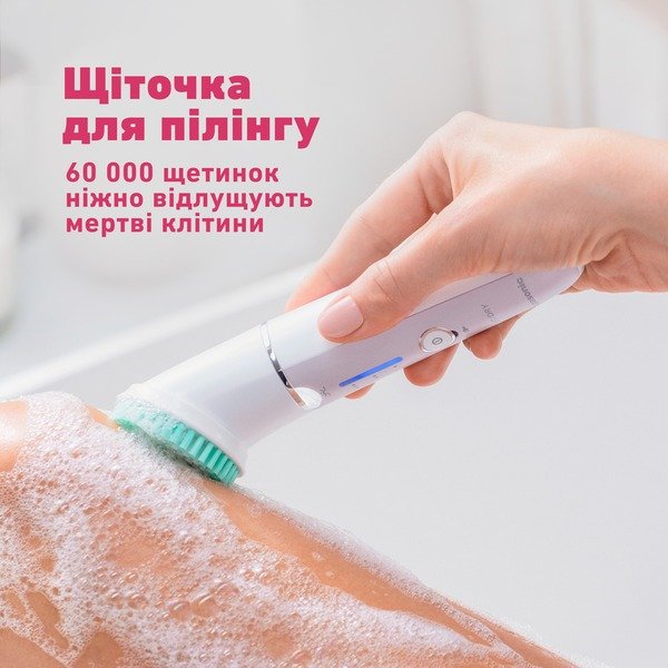 Этот набор для удаления волос оснащен всеми насадками, которые вам понадобятся, чтобы сделать кожу гладкой и блестящей. В набор эпилятора входят эпиляционные насадки для ног и рук, для зоны бикини и подмышек. Он также поставляется с насадкой для деликатной эпиляции Gentle Cap, насадкой для глубокого пилинга и насадкой для ухода за стопами.