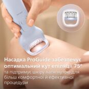 Первый в мире эпилятор с технологией ProGuide и LED-подсветкой с обзором 360° для эффективных и одновременно деликатных результатов. ProGuide обеспечивает идеальный угол эпиляции 75° для наилучшего результата и поддерживает кожу в натянутом состоянии, повышая комфорт во время процедуры. LED-подсветка помогает заметить и удалить все волосы.
