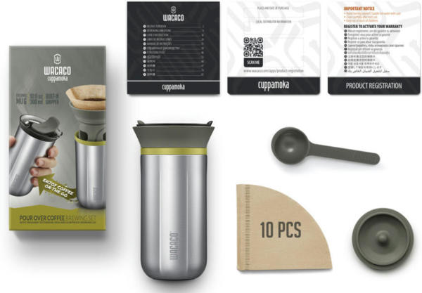 Компактный дриппер-термокружка Wacaco Cuppamoka предназначен для приготовления кофе методом пролива (пуровер), позволяя наслаждаться ароматным напитком в офисе, в командировке и в путешествии.