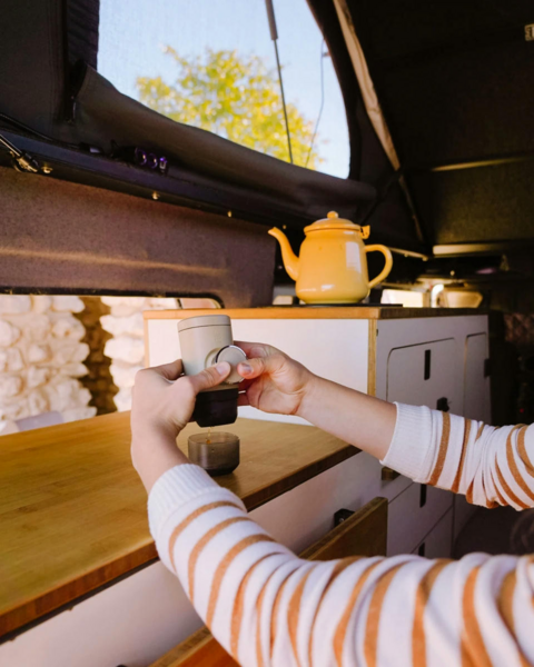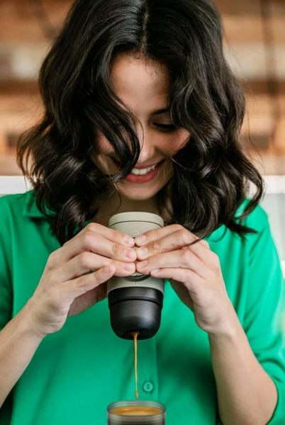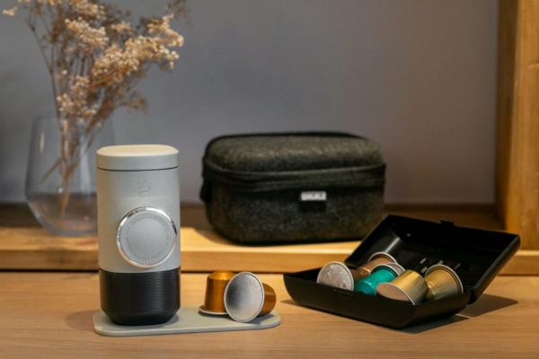 Ультракомпактная ручная кофеварка, работающая с капсулами Nespresso. Имея всего 13 см в длину, нагнетает давление до 18 бар. Помогает приготовить отборный эспрессо, где бы вы ни были: в горном походе, офисе или вагоне. Не требует питания от электросети и батареек - действует с помощью ручного пресса. Легко помещается в рюкзак, бардачок авто, сумку велосипеда.