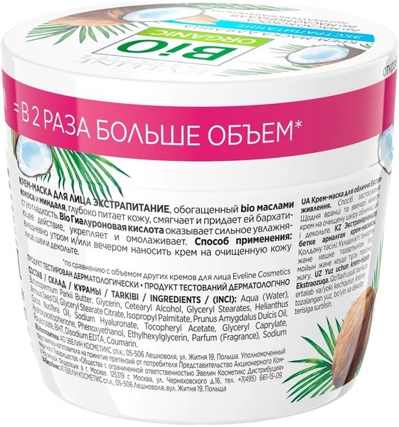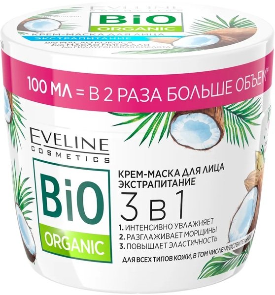 - Eveline Cosmetics Крем-маска для лица экстрапитательная 3в1 серии bio organic, 100 мл
